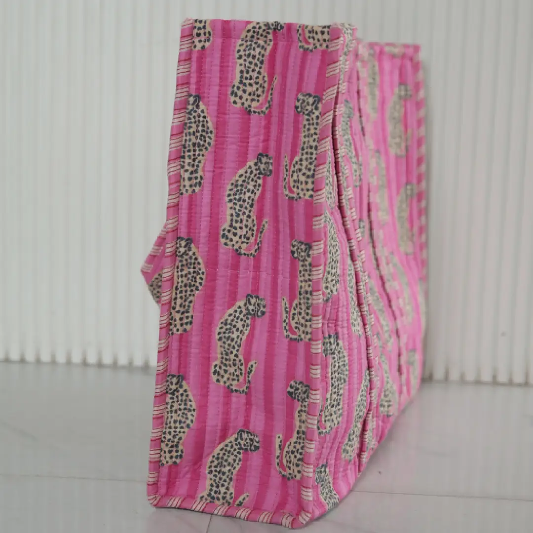 Add a touch of whimsy to your wardrobe with this blush-toned tote bag, adorned with a delightful cheetah parade print. The gentle pink canvas sets a soothing backdrop for the animated animal motif, making it a standout accessory for casual outings, creative workspaces, or weekend strolls. Crafted from lightweight yet durable fabric, it offers ample space for your essentials while keeping your look effortlessly chic. The matching handles ensure comfort and cohesion, making this tote a versatile companion for those who love subtle flair.