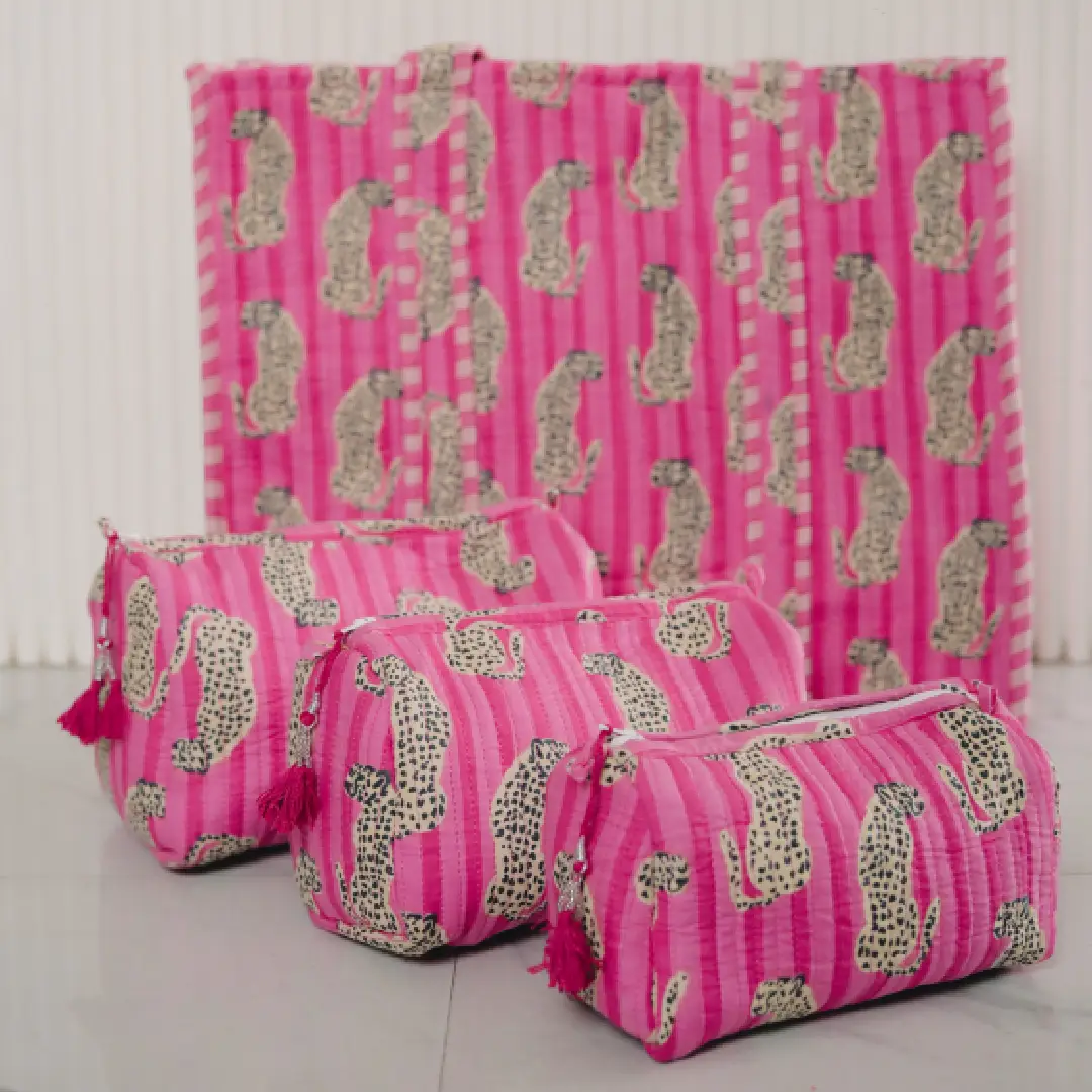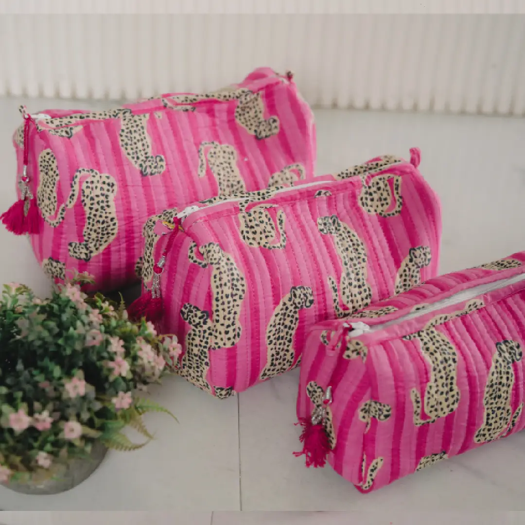- Soft blush pink canvas with cheetah print