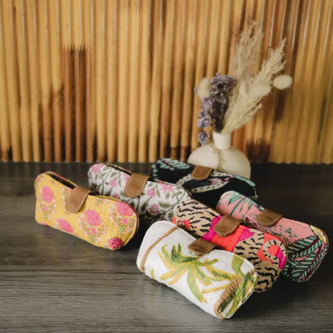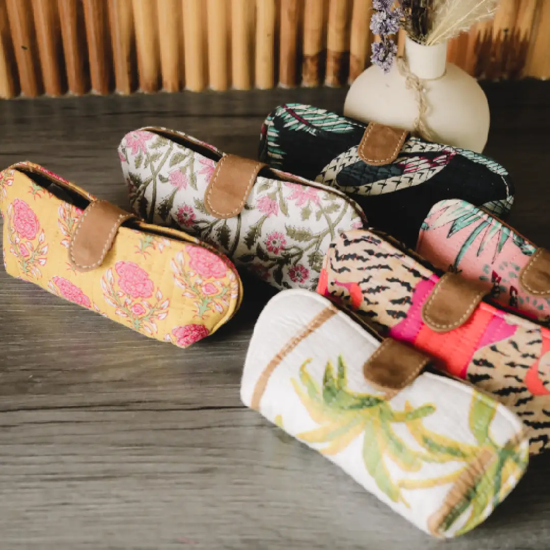 Celebrate handcrafted charm with this elegant organizer pouch, showcasing vivid pink and green floral embroidery on a creamy white quilted canvas. The brown leather strap closure adds warmth and texture, making it a perfect companion for storing makeup, stationery, or travel essentials. Compact yet spacious, this pouch blends traditional artistry with modern utility—ideal for gifting or everyday use. Whether tucked into a tote or styled solo, it brings a graceful botanical touch to your accessory lineup.