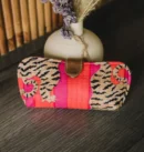 Elevate your everyday organization with this stylish pouch, adorned in warm blush, red, and beige hues with a striking abstract pattern. Its sleek silhouette makes it ideal for storing makeup, pens, or small essentials, whether you’re at work, school, or on the go. The brown leather strap closure adds a sophisticated touch while keeping your items secure. Lightweight yet sturdy, it’s the kind of accessory that effortlessly blends function and fashion.